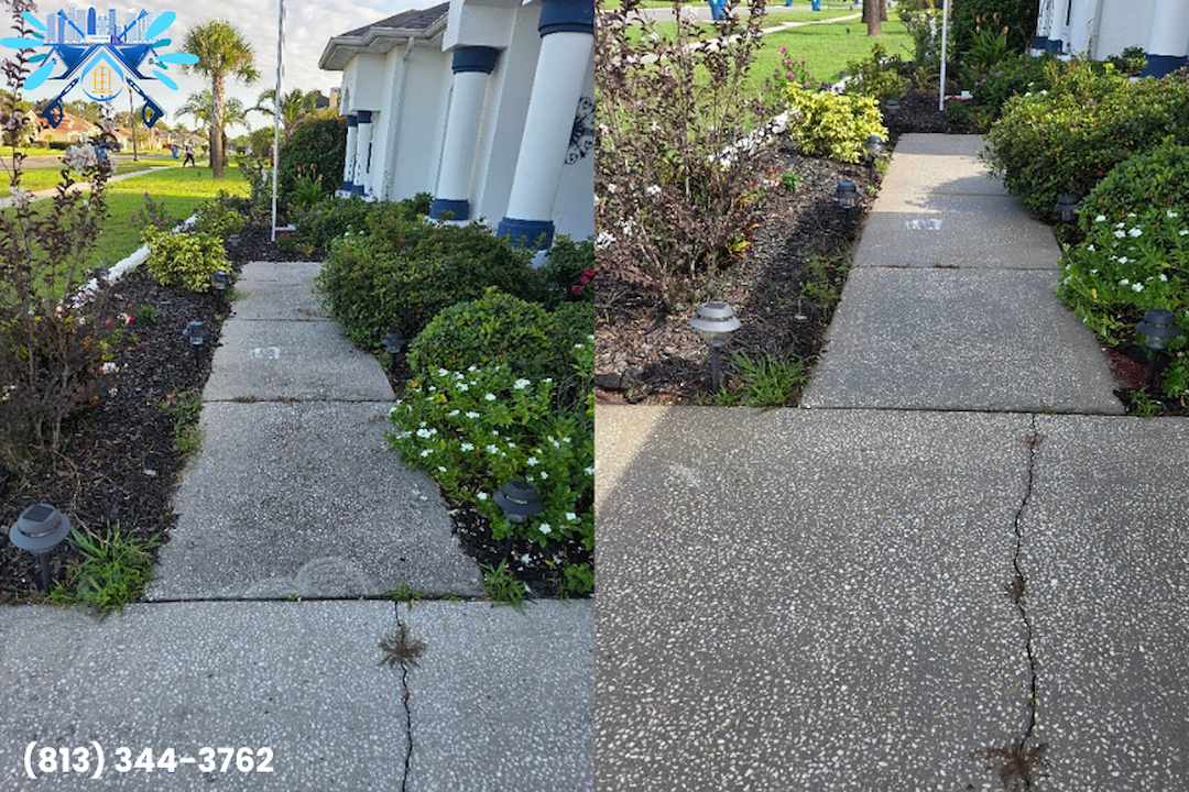 Our Elite Pressure Washing Pros team recently completed a remarkable driveway and walkway pressure washing project in Spring Hill, FL. This client's surfaces had accumulated common Florida grime, mildew, algae, and dirt, significantly diminishing their property's curb appeal.